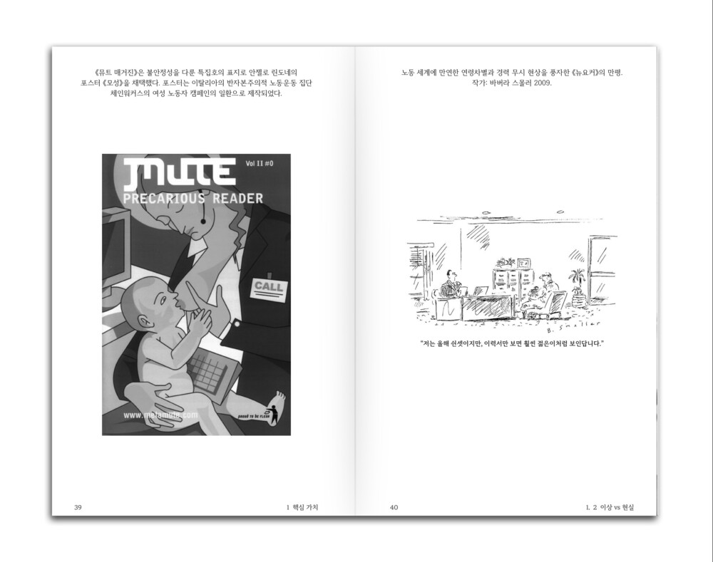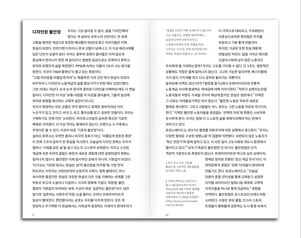 이렇게 디자인된 사회가 어떻게 우리가 '앙트레프레카리아트'가 되도록 가르치는 지를 디자이너의 감각과 유머로 풀어냅니다.